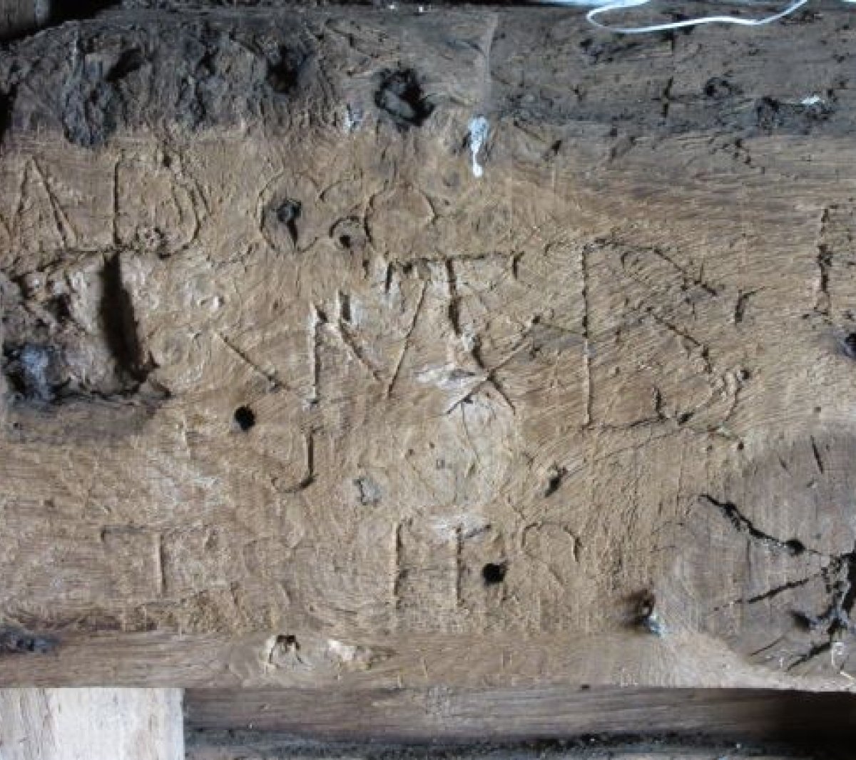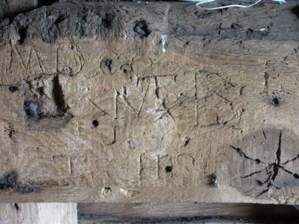 Kibworth Harcourt Post Mill once again looks like its former self, with a white body and sails, black sheeted roofs, a roundhouse and a curved tail pole. The interior is covered with burn-marks and apotropaic marks designed to ward off evil spirits, and graffiti left by millers and visitors from the past 300 years – a fascinating insight into its long history.