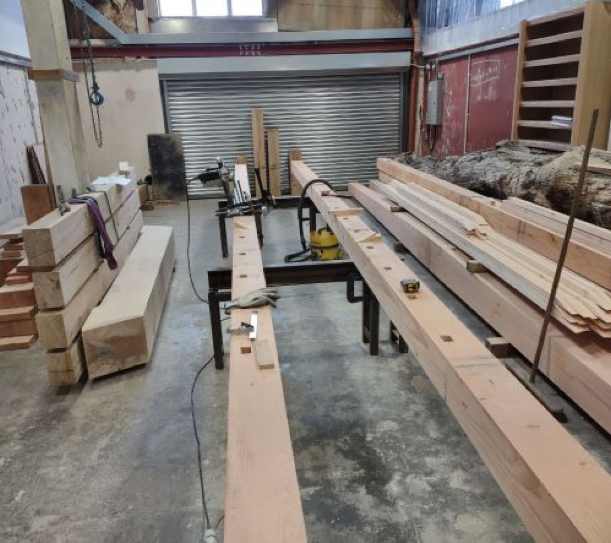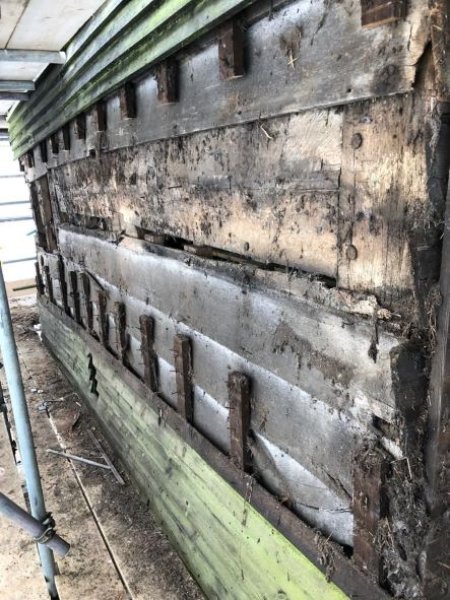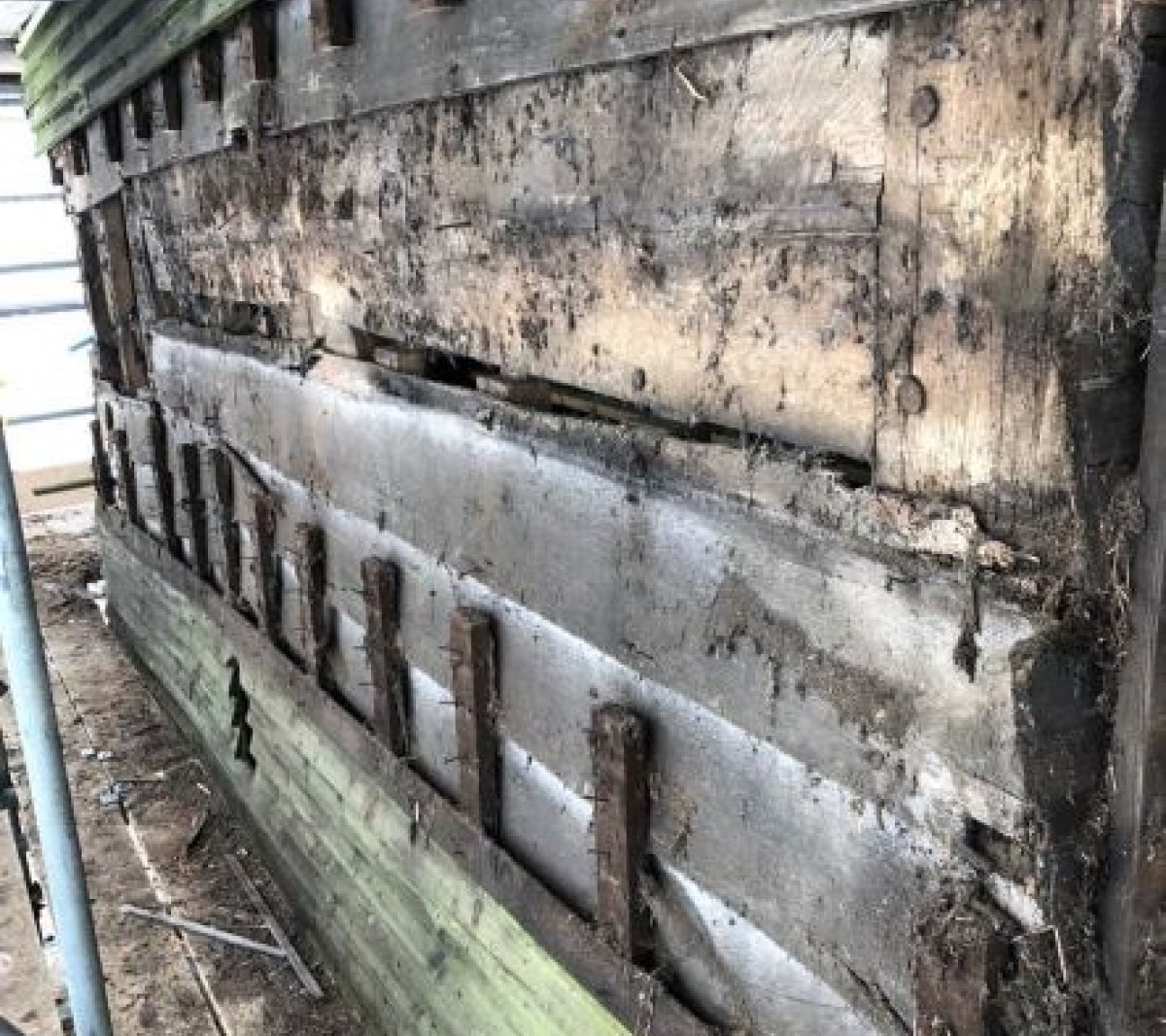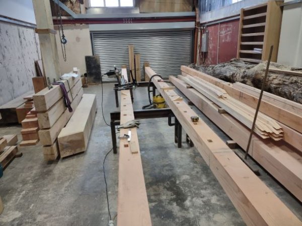 They scarfed new oak sections onto the sound timber to re-establish the original joint, then re-installed the softwood side plates.