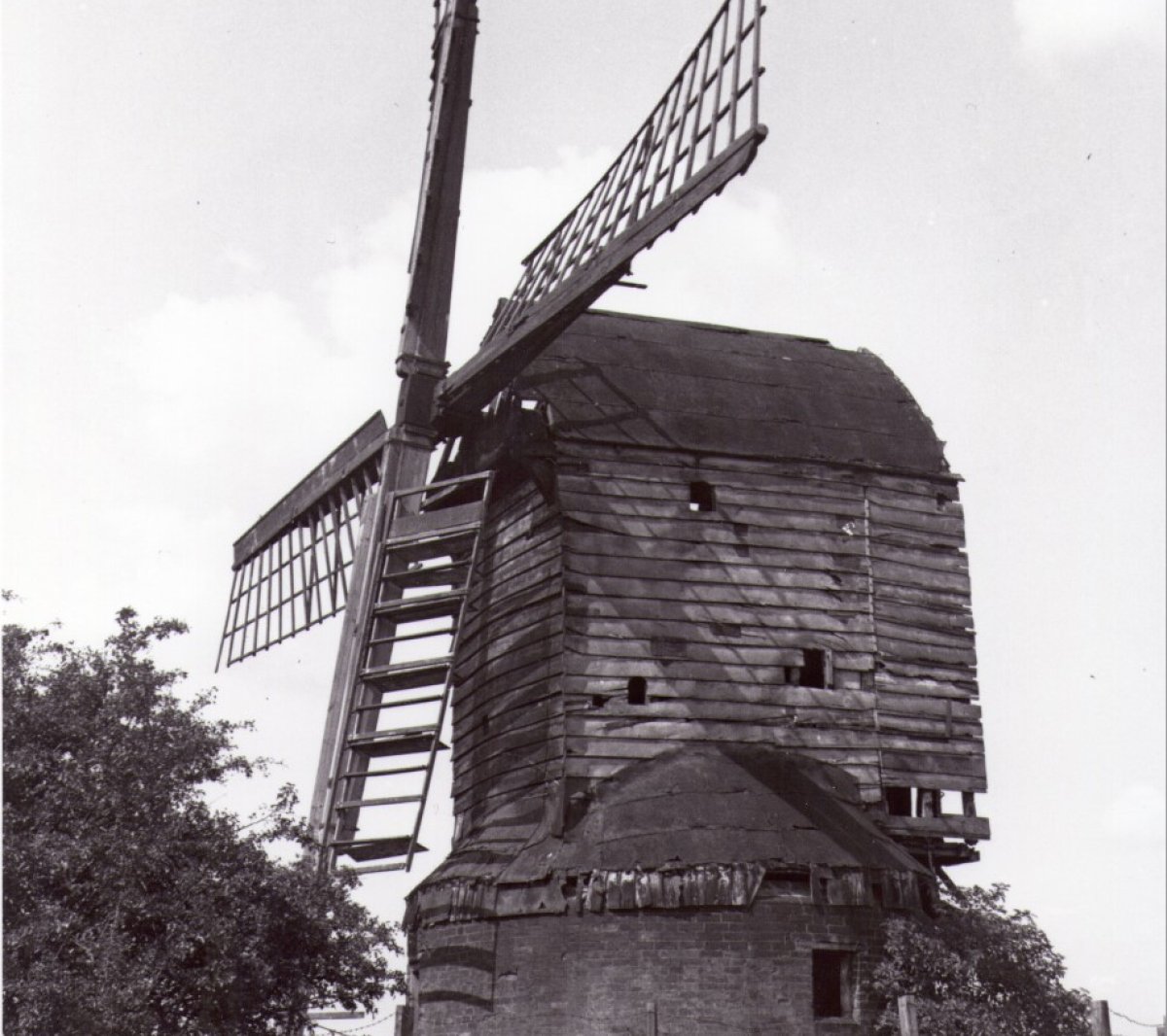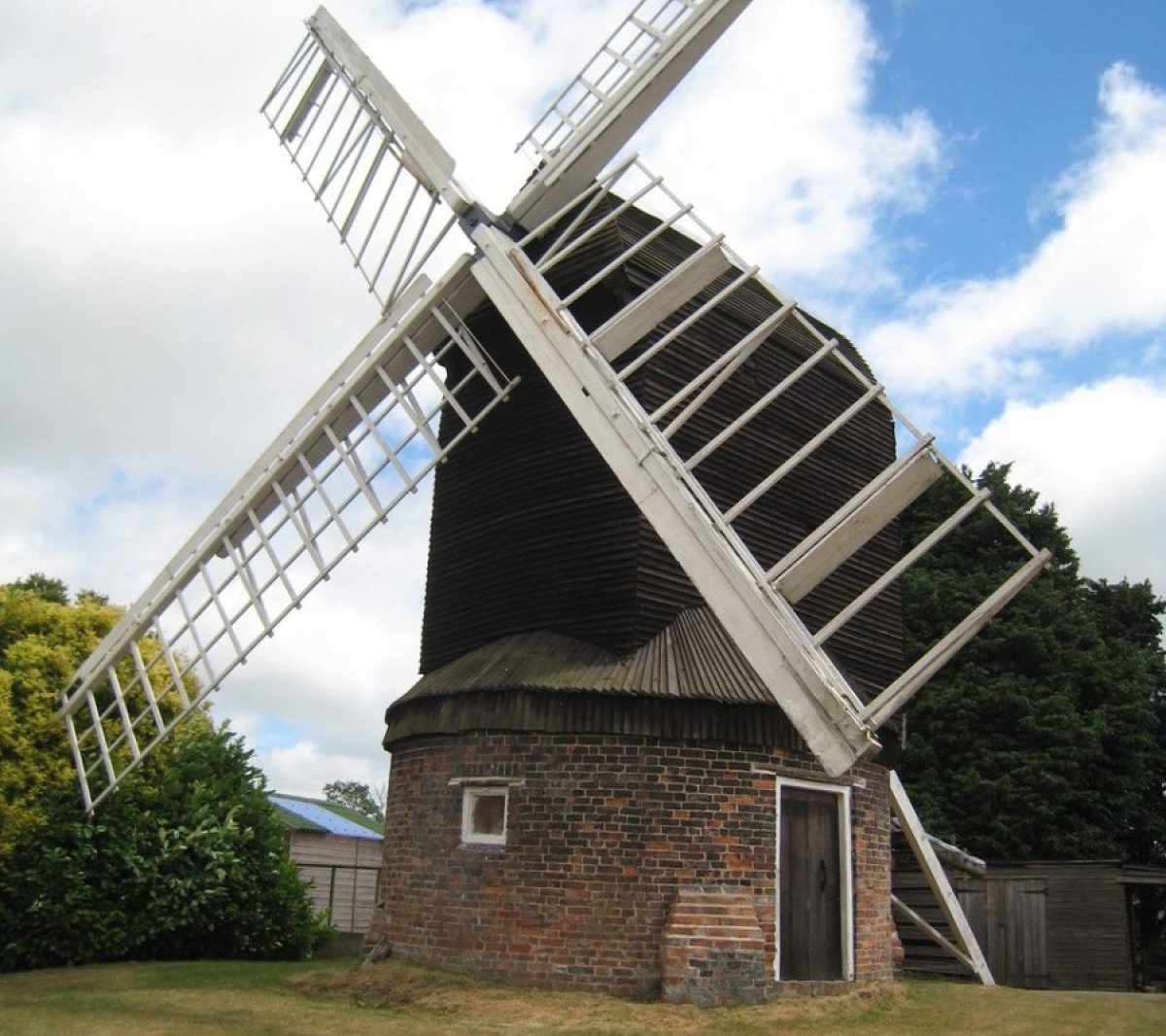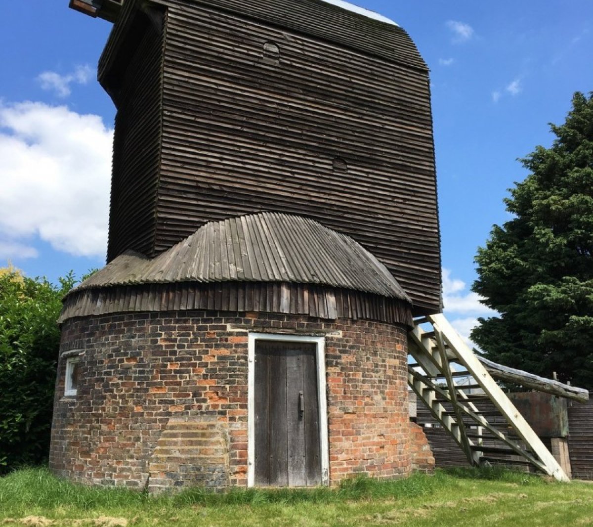 A post mill is the earliest type of traditional windmill found in the UK. The weight of the mill rests on a single post so the mill can be turned to face the wind. This post is supported by a trestle which sits on brick piers, and at Kibworth, that trestle is enclosed in a brick roundhouse.