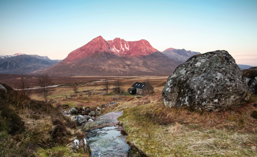 Shenavall bothy below An Teallach. Credit: Mountain Bothies Association