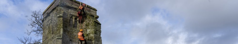 Local volunteers gathered over two days in February to carry out maintenance work under the guidance of experts. This involved carrying out surveys into the building’s condition and clearing ivy and vegetation from the tower and listed tombs. Lime and plain trees which were damaging the structure were made into simple benches to welcome visitors to the site. SPAB working parties offer volunteers a unique learning experience and involve local communities with a historic building’s future.