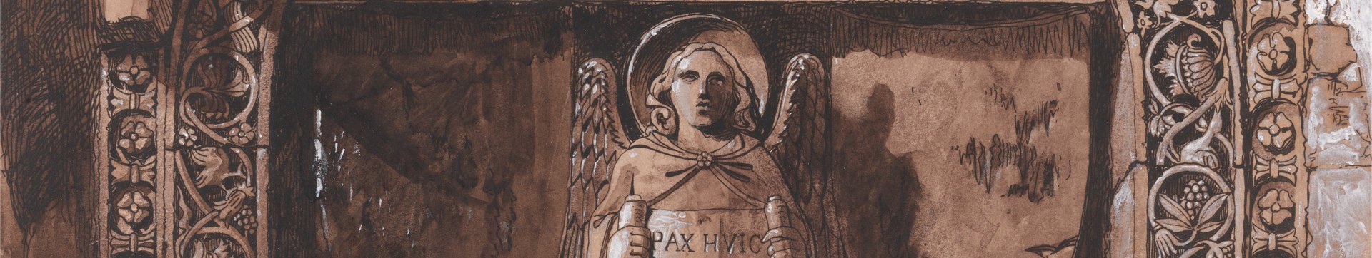 John Ruskin, 1819–1900, Doorhead of the Palazzo Contarini della Porta di Ferro, undated, Pen and black ink, brown wash and white gouache on medium, slightly textured, cream wove paper, Yale Center for British Art, Yale Art Gallery Collection.