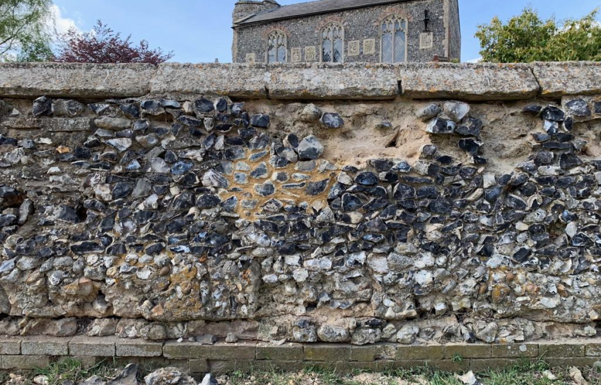 An ancient churchyard wall in Feltwell, near Thetford, Norfolk will be rescued from collapse by the local community and master craftspeople on Sunday 8 – Tuesday 10 September.