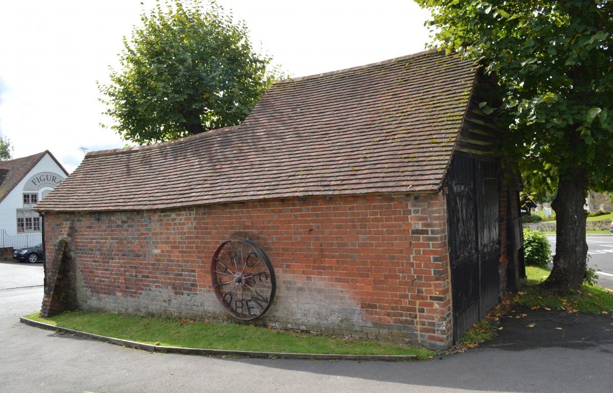 The Grade II- listed forge was built around 1812 on the site of the former village Market House, possibly re-using some of the building materials. It is one of the last intact traditional village green smithies in the country. The building comprises three main parts. The main space containing the two forges has timber-framed and brickwork walls, with a peg-tiled, double-hipped roof. The shoeing shop and garage to the east are divided by a timber plank wall and have brickwork walls and peg-tiled, double-pitched gabled roofs.