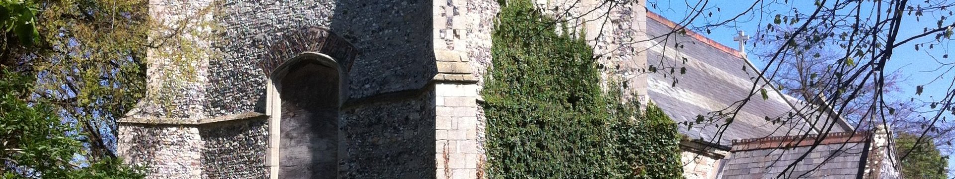 Image: Medieval west tower, part of nave and porch, Church of St Mary the Less, Bury Road, Thetford, Norfolk. Photographed by Jenny Freeman before repairs commenced. Current project of Freeman Historic Properties Ltd.