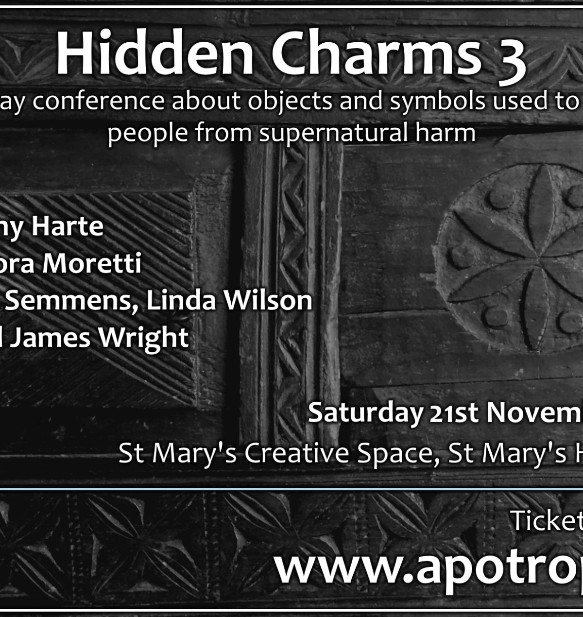 The theme of the Hidden Charms 3 conference in Chester is magical house protection and related areas. There will be nine 20 minute lectures, each with 10 minutes for questions afterwards and four poster presentations looking at protection marks.