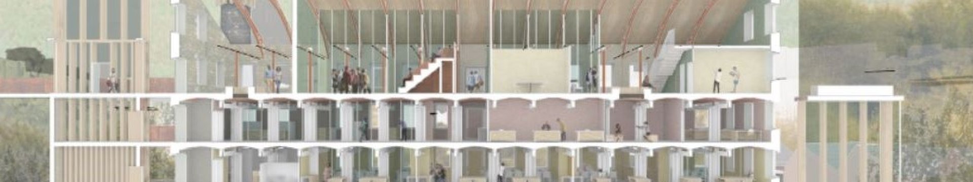 Join us for this evening event where the joint winners of the SPAB’s 2019 Philip Webb Award will present their schemes, both re-introducing semi-industrial uses to former manufacturing sites in an advanced state of dereliction. Taking inspiration from ceramic techniques, Olivia Hellman proposes an urban Dairy Factory in a redundant calcining mill in the Potteries, and Nikola Yanev re-purposes a Yorkshire textile mill to house an algae energy production plant and wetlands education centre (image credit).