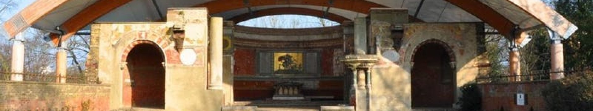 The church was designed by the Wyatt brothers in the mid-nineteenth century as the garrison church for the Royal Artillery to house the memorials to the fallen, including VC winners from the Crimea until WW2 when it was damaged by a V2 rocket. The church suffered from bomb damage in 1944 and was subsequently largely demolished to create a memorial garden. The east end was consolidated and has been roofed over to protect the remaining fabric, including mosaic of St George. It is currently under a repair contract funded by Historic England and others. The works include a new floor to the apse, fabric repairs and protection, repair of the pulpit and altar, repairs to marble and alabaster mouldings, tiles and inscriptions.